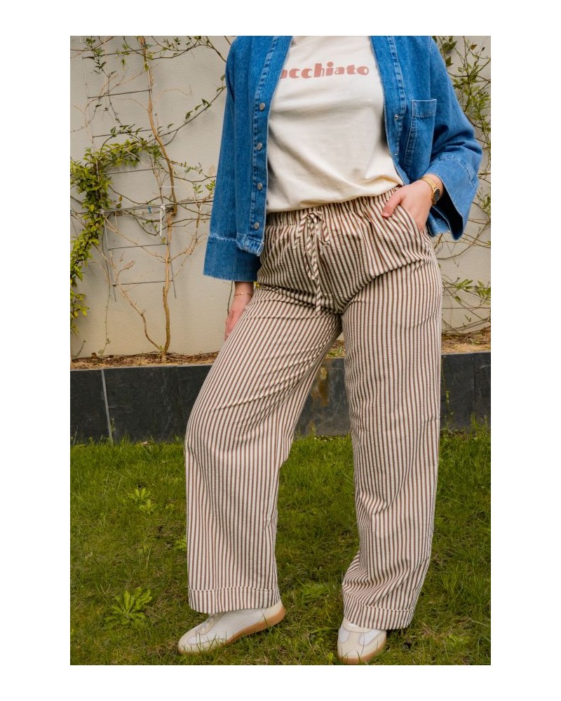 Pantalon à Rayures Marron et Crème