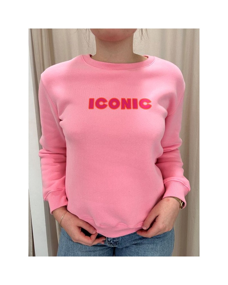 Affirmez votre style avec ce sweat rose orné de l’inscription “ICONIC” sur le devant. À la fois moderne et confortable, il apporte une touche dynamique et tendance à vos looks du quotidien.