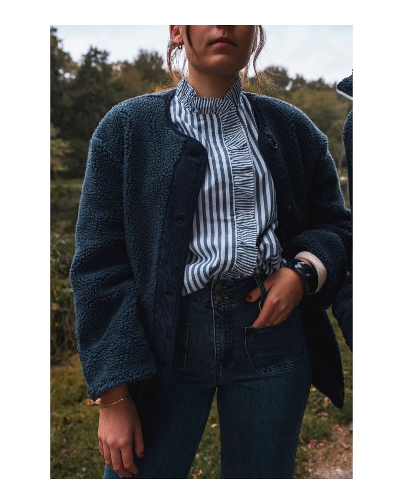 Alliez style et confort avec cette veste bleu en polaire. Idéale pour les journées fraîches, elle offre chaleur et légèreté tout en restant élégante. Ses deux poches avant pratiques ajoutent une touche fonctionnelle à ce basique incontournable de la saison.