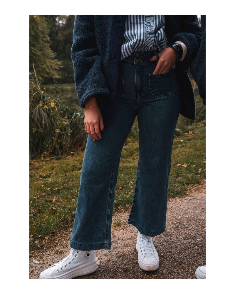Optez pour un look intemporel avec ce jean bleu à coupe évasée. Doté de deux poches avant et d’une jambe large, il offre une silhouette moderne et confortable. Sa matière denim de qualité assure une tenue parfaite et un style décontracté en toute circonstance.