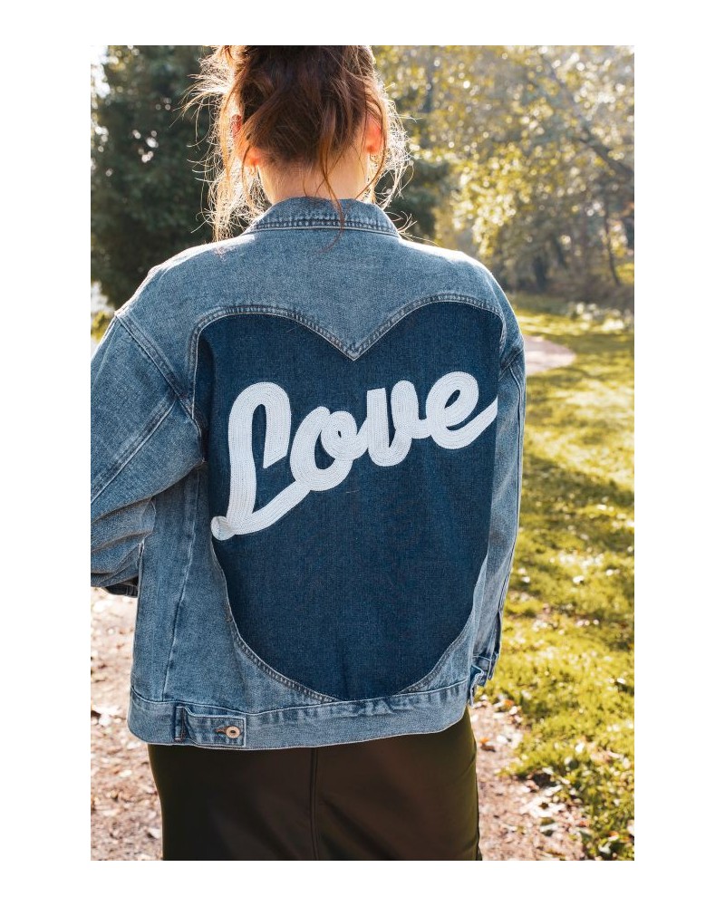 Craquez pour cette veste en jean tendance, sublimée d’un grand cœur et de l’inscription “Love” dans le dos. Originale et pleine de caractère, elle allie style casual et touche romantique. Un véritable coup de cœur mode pour celles qui aiment se démarquer avec douceur et audace.