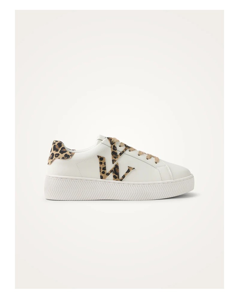 - Monogramme et patch arrière en suédine effet peau de pêche beige imprimé léopard