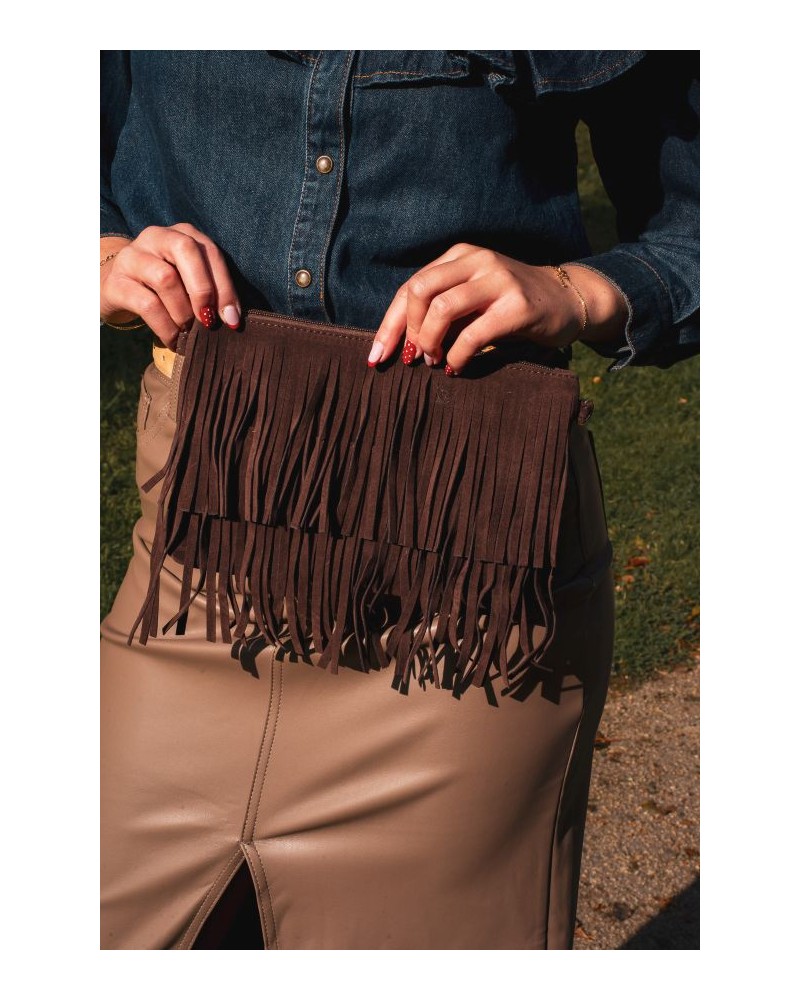 Apportez une touche bohème à votre look avec ce petit sac à franges marron. Sa matière douce et sa anse pratique en font un accessoire à la fois stylé et fonctionnel. Parfait pour compléter vos tenues avec une note tendance et décontractée.