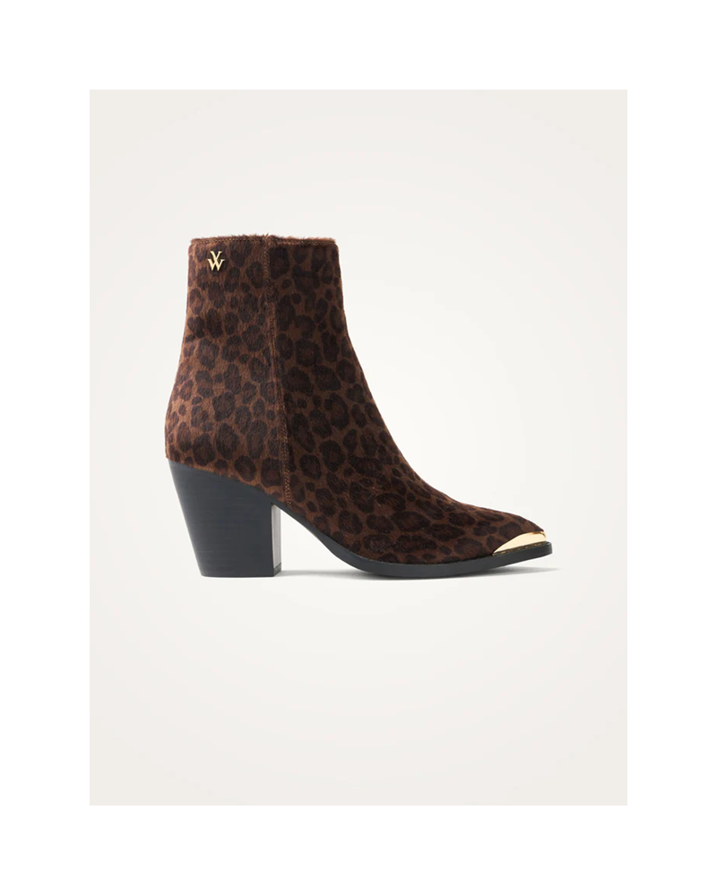 - Bottines style santiags marron effet poulain à imprimé léopard